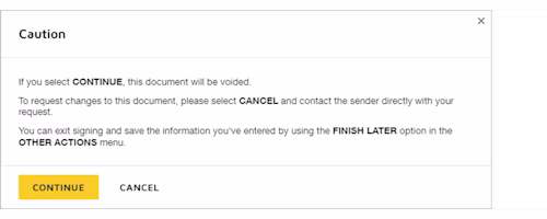 Once this is done, the signer will only be able to to decline (and thus void the envelope) after providing a reason in the following dialog: